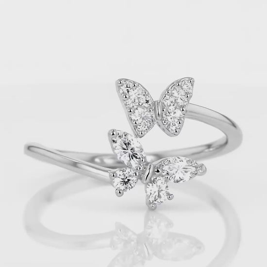 925 Sterling Silver Twin Butterfly Spark Ring