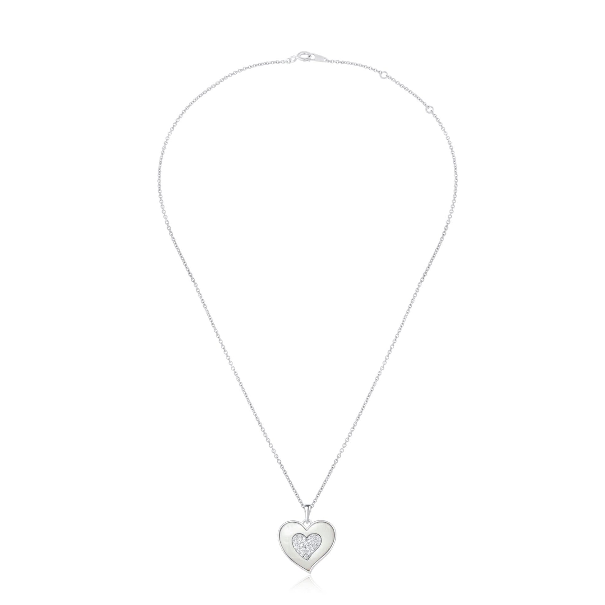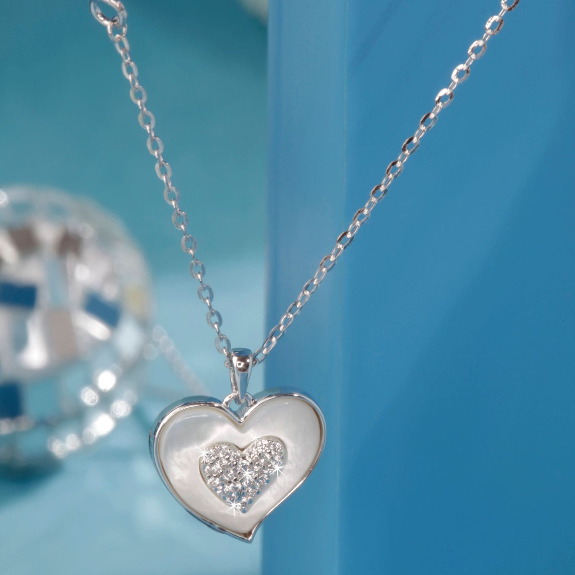 The naturally iridescent 'Loving Heart MOP Zircon' Silver Pendant creates a subtle play of colors, ranging from soft whites to gentle rainbow hues, making each pendant uniquely beautiful. Premium cubic zircons are precisely set around the heart's outline, adding a brilliant sparkle that frames the ethereal MOP center