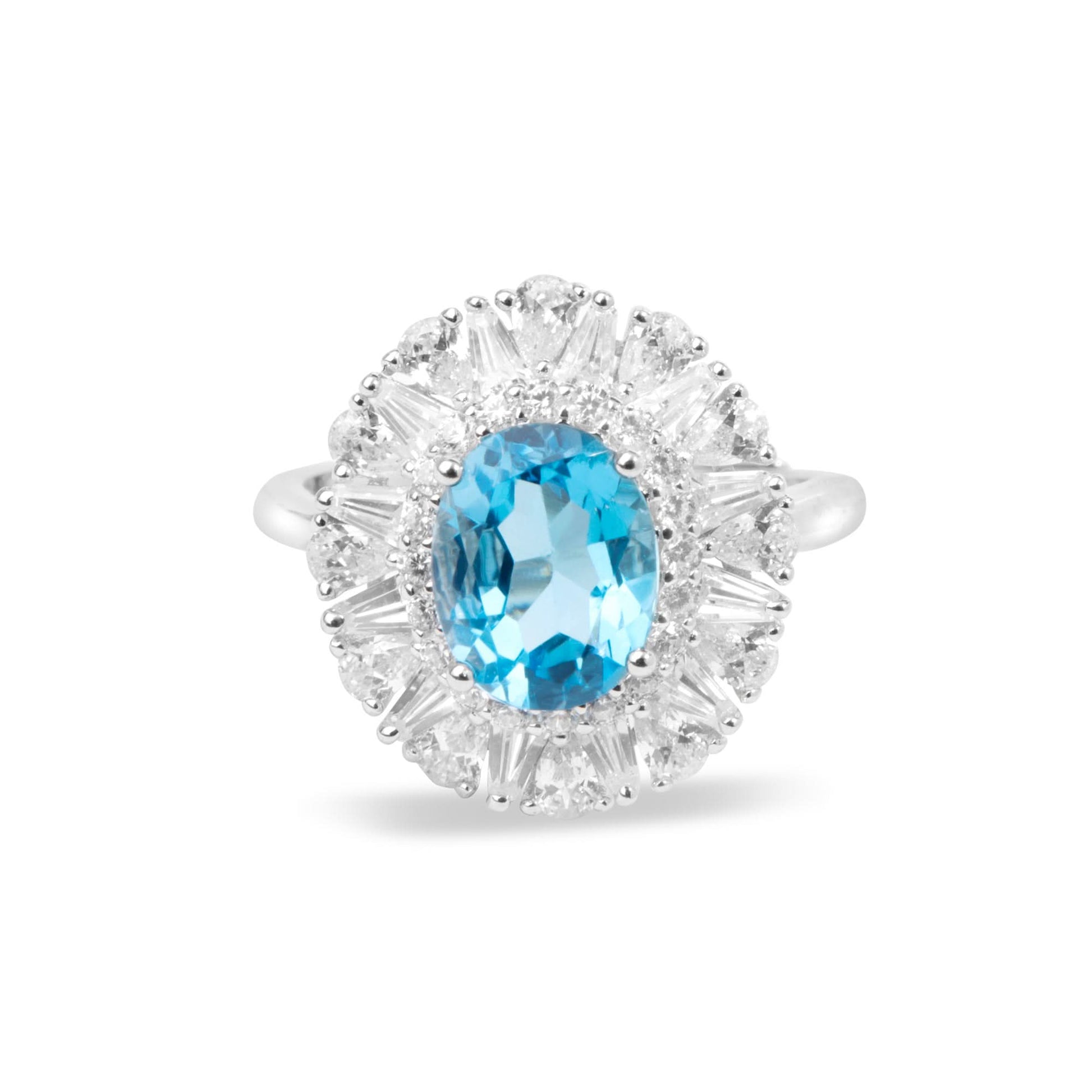 Introducing the "Forget-Me-Not Gem Ring" crafted for timeless elegance. This exquisite piece features a simple yet unique design, adorned with a delicate flower motif and a captivating blue gemstone. Hypoallergenic and made with pure 925 silver, it ensures both style and comfort. Coated with rhodium for enduring shine, this sterling silver jewel epitomizes sophistication. Elevate your ensemble with this enchanting piece from our collection of fine jewellery.