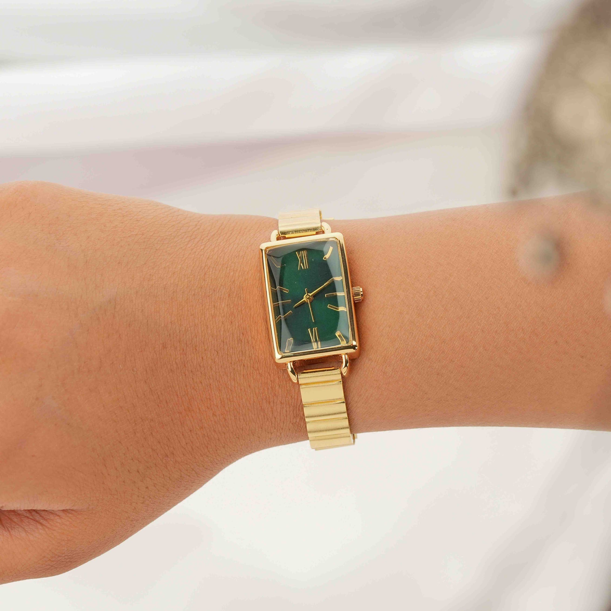 Crafted in radiant gold with a deep emerald dial, Silvish Emerald Muse captures the spirit of quiet confidence. Its sleek rectangular design reflects contemporary sophistication, while the rich green hue evokes a sense of calm power — bold yet graceful.