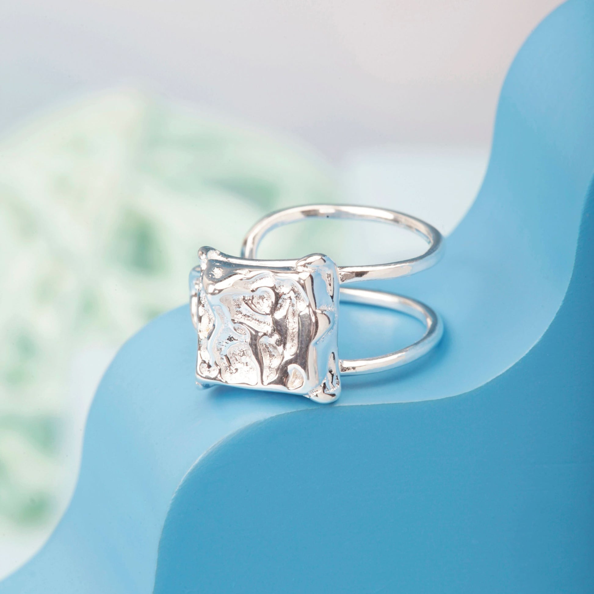 Introducing our "Irregular Frosty Square Lava Ring," a masterpiece in simplicity and elegance. Crafted from pure 925 silver, sterling, it's hypoallergenic and safe for sensitive skin. The unique design exudes sophistication, featuring a frosty square lava pattern. Elevate your style effortlessly with this timeless piece of jewellery, perfect for any occasion. Make a statement with understated beauty.