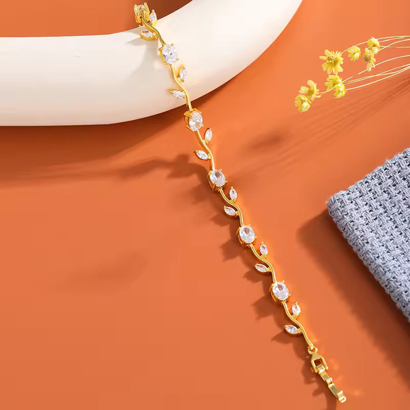 OffersSoft, sparkly, and straight out of a fairytale. This Gorgeous bracelet features a delicate gold-tone vine design with blush pink oval stones and tiny marquise “petal” crystals placed all around for that royal, feminine glow. It’s lightweight, super elegant, and instantly upgrades any look from basic to princess.