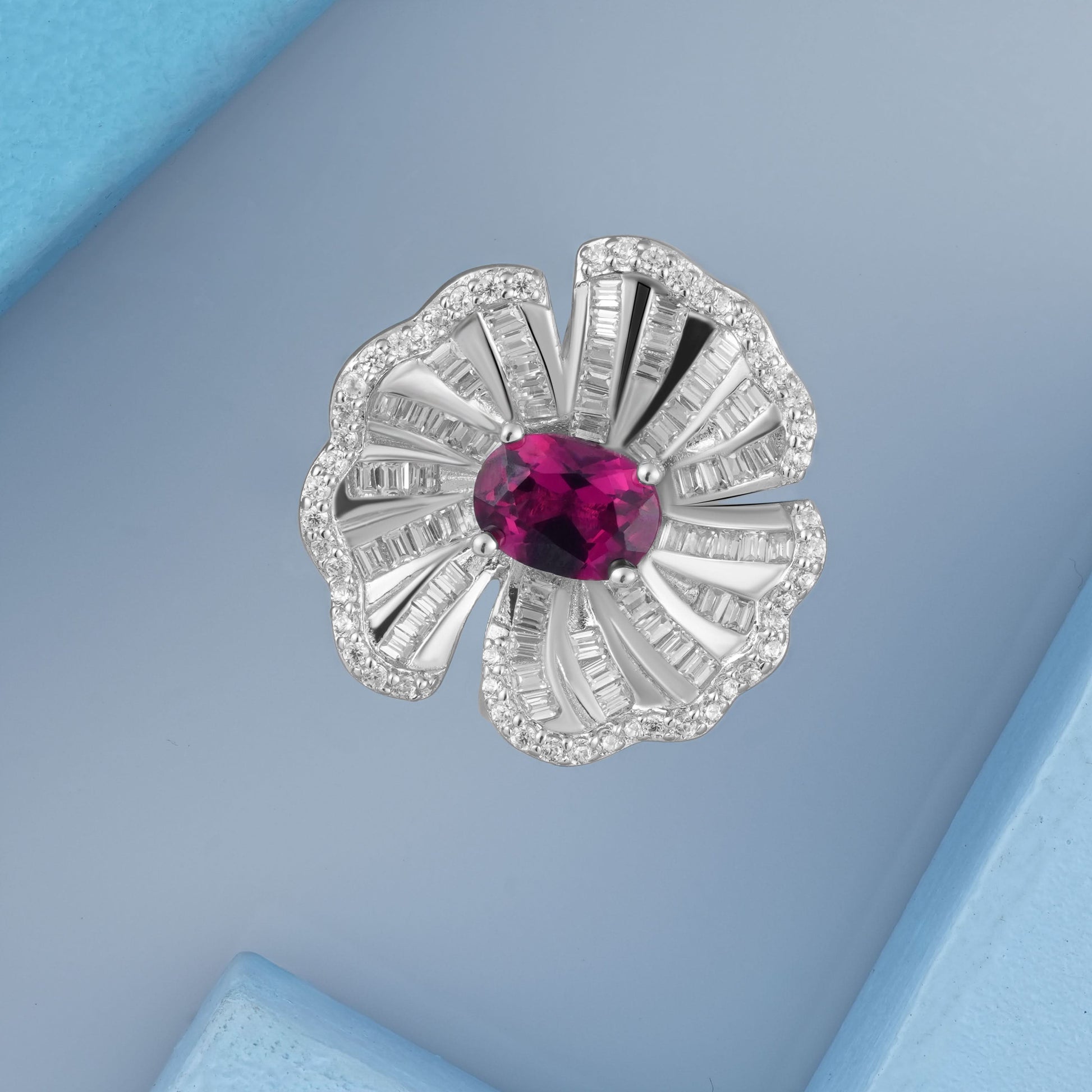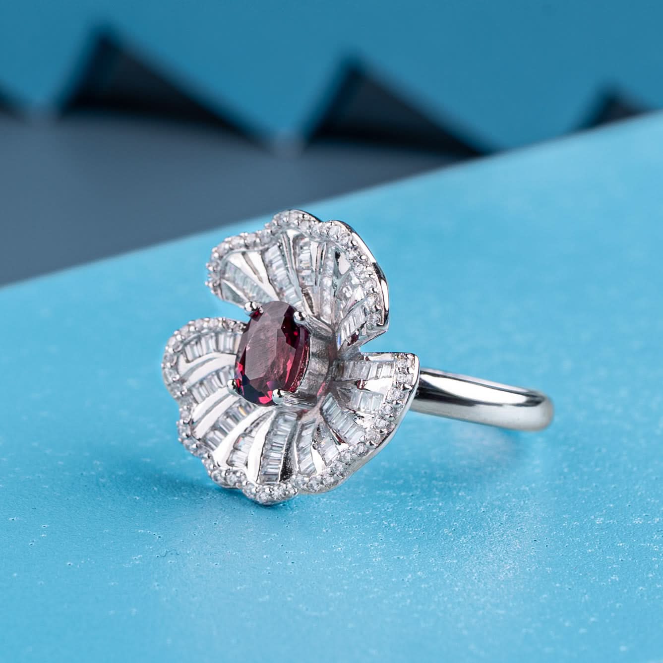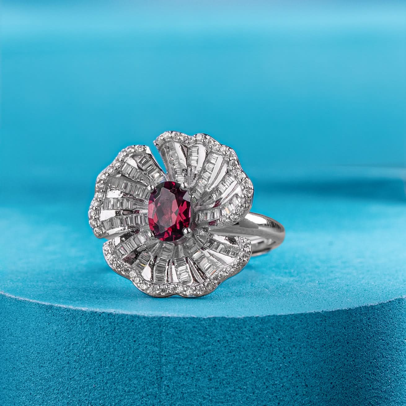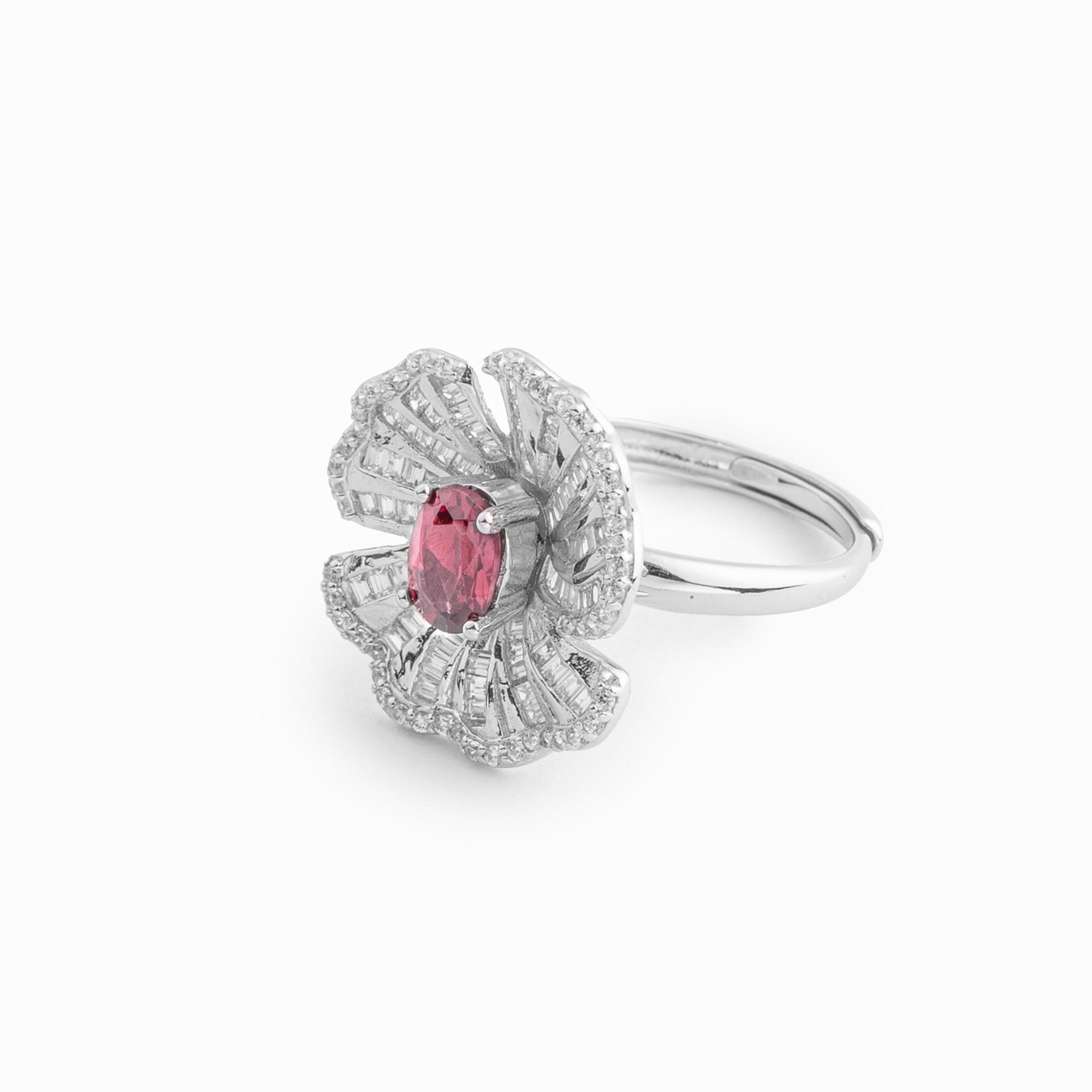 Silver Scarlet Radiance Cocktail Ring