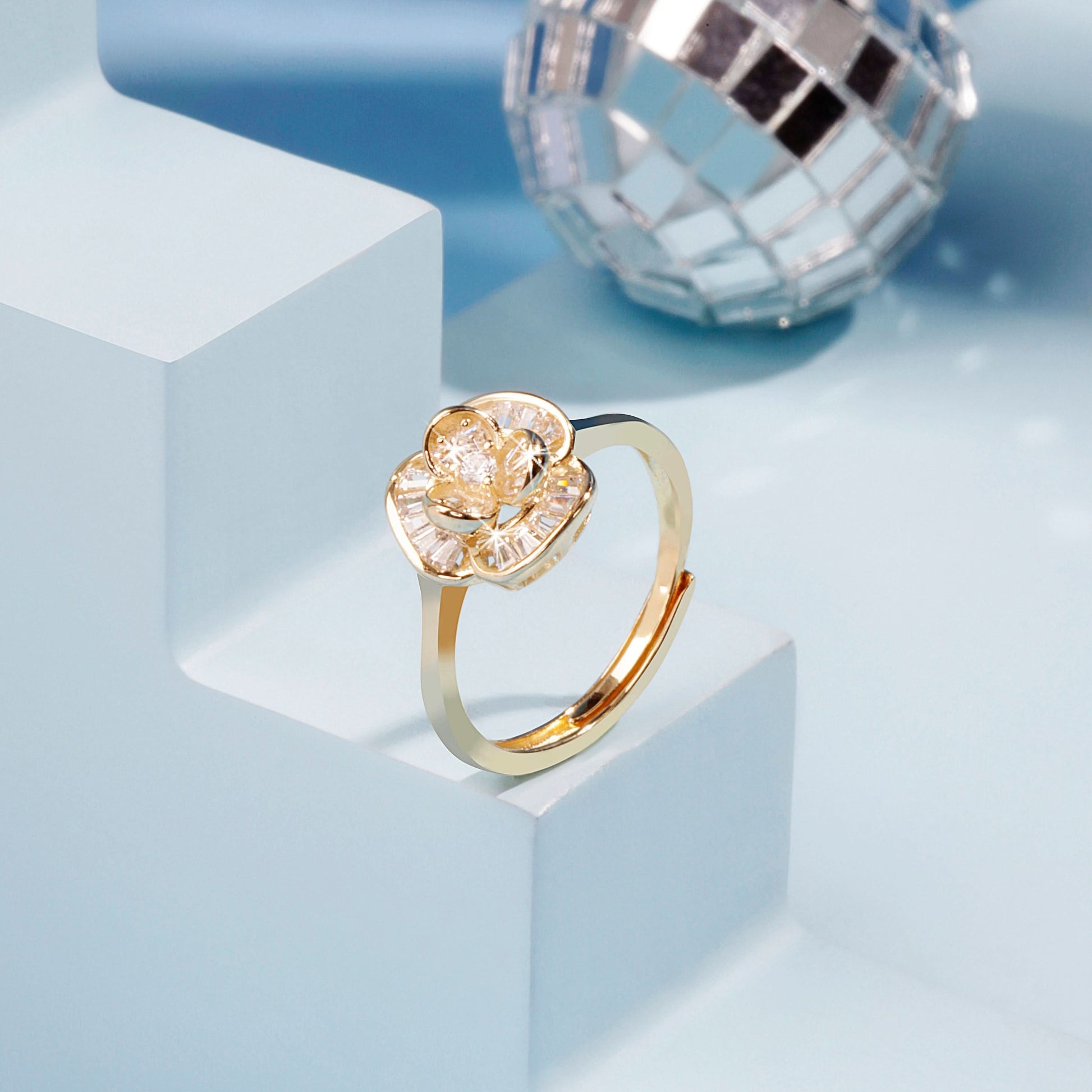 The 'Sterling Floral' Gold Plated Ring is an exquisite celebration of nature's beauty. Its intricate design, adorned with delicate floral motifs, exudes elegance and grace. Bathed in radiant gold plating, it adds a touch of opulence to any ensemble, capturing attention with its timeless charm and botanical allure.