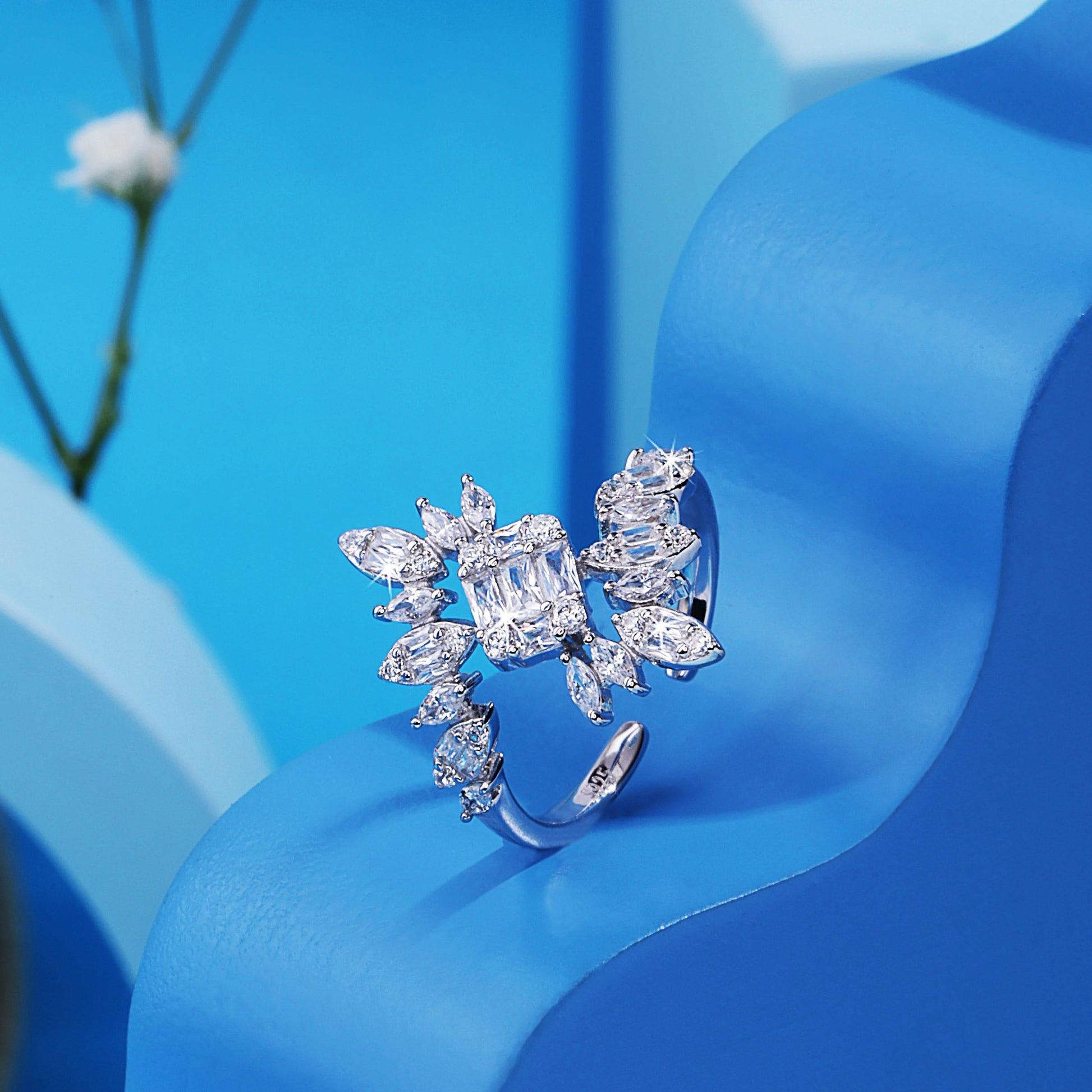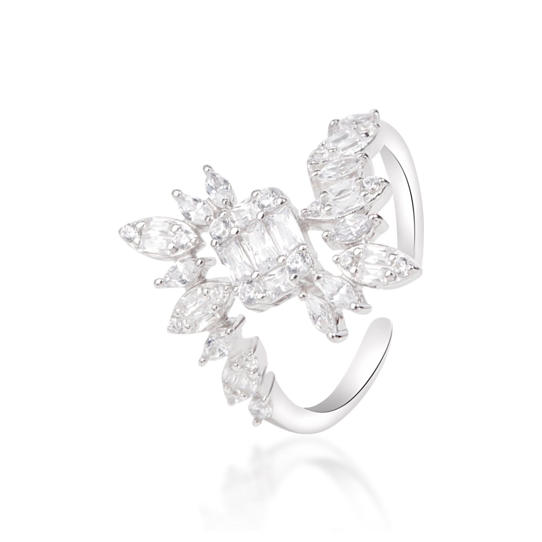 The 'Sterling Leafs' White Silver Ring exudes ethereal beauty, adorned with delicate leaf motifs meticulously crafted in shimmering sterling. Its centerpiece, a pristine white stone, radiates elegance and purity, accentuating the ring's enchanting allure. A mesmerizing symbol of nature's grace and timeless sophistication.